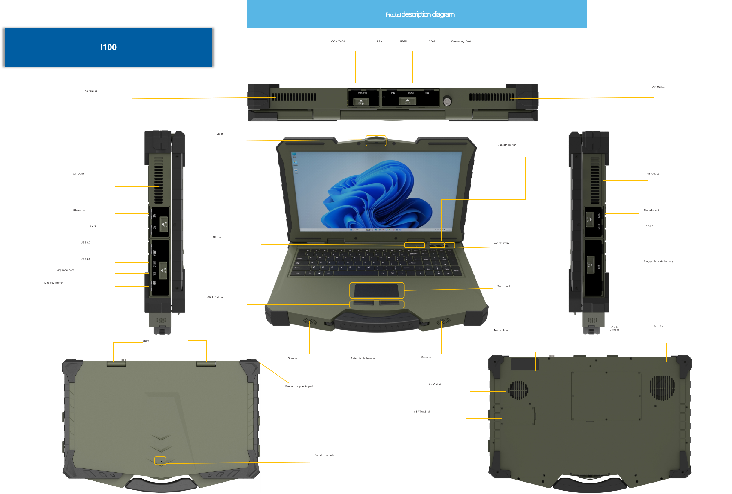 I/O Interface | USB3.0*3 Thunderbolt™ 4 Type-C *1 RJ45*2 COM*2(Or COM*1+VGA*1) HDMI*1 Power aviation plug*1 Earphone port*1 Grounding Post*1 |